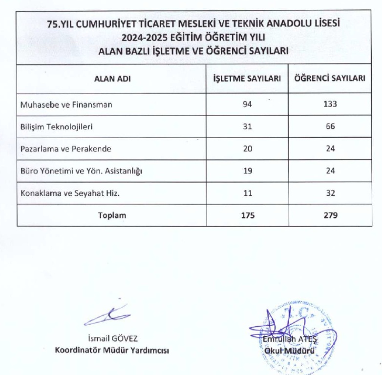 2024-2025 Eğitim Öğretim Yılı Alan Bazlı İşletme ve Öğrenci...